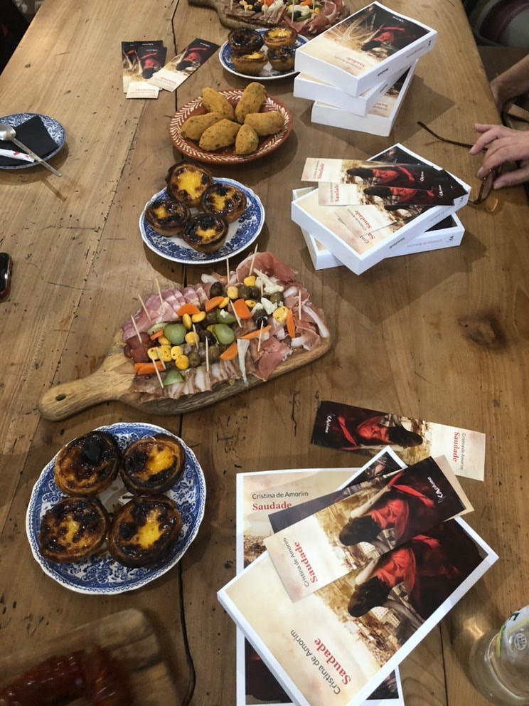 La décoration est typiquement portugaise, et le lieu propice à des rencontres chaleureuses, ce qui a été le cas, j’y ai passé une après-midi délicieuse, j’ai pu évoquer mon roman « Saudade » et avoir de très riches échanges, et faire des rencontres très étonnantes ! (j’y ai rencontré le fondateur de l’école de portugais Boissières, que j’ai fréquenté chaque mercredi et samedi de mon enfance).